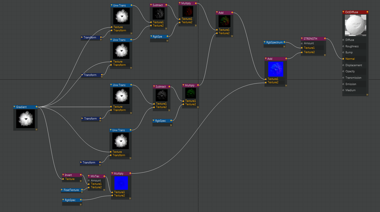 on this setup just blur the displacement on the filter option at diffuse shader. you can get same effect but again this is just to save output out.anklove wrote:Thanks for your approach Milan! I checked your file and it works just fine, but lacks some options. The good thing about Knald / Crazy Bump is that they have some mixing option between different radiuses/sizes of bumpiness. I usually do some text embossing with those programs and reflections works really well after mixing. I think its really easy to implement to your concept tho. You "just" need to mix few offsets and blurs together, but it will be spiderweb node system, so approaching that via osl would be great!milanm wrote:I've been looking into this. I'm going to post a OSL node for correct layering of normal maps soon-ish here on the forums so I thought about including this functionality too, we'll see, I can't promise anything.