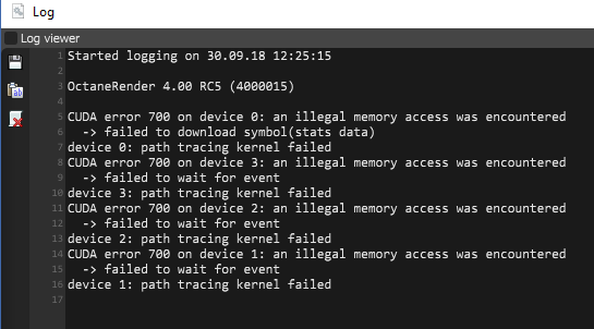I have a very simple texture emission material with opacity channel and when I try to change parameters in power for example, octane crashes when tries to update the material preview. The preview turns to error like blue pattern and I get Render Failure. Tried with different drivers. I am using Octane 4 RC5 on WIn 10 on 4x 1080TI.
