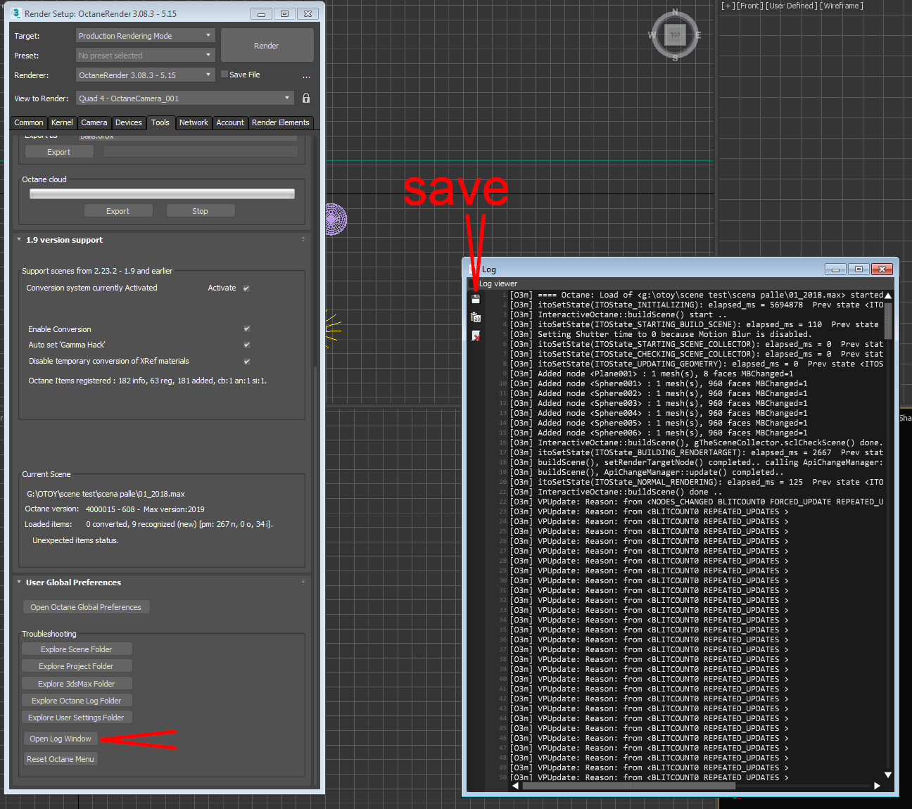 and Octane Log Windows after crash (Render setup > tools > User global preferences > open Log Windows > (save it)