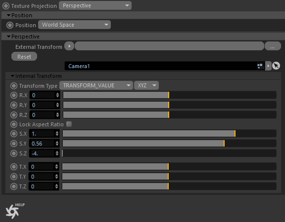 To do this I set it to Perspective, then the Position setting to World Space. Then I set the scale values to: