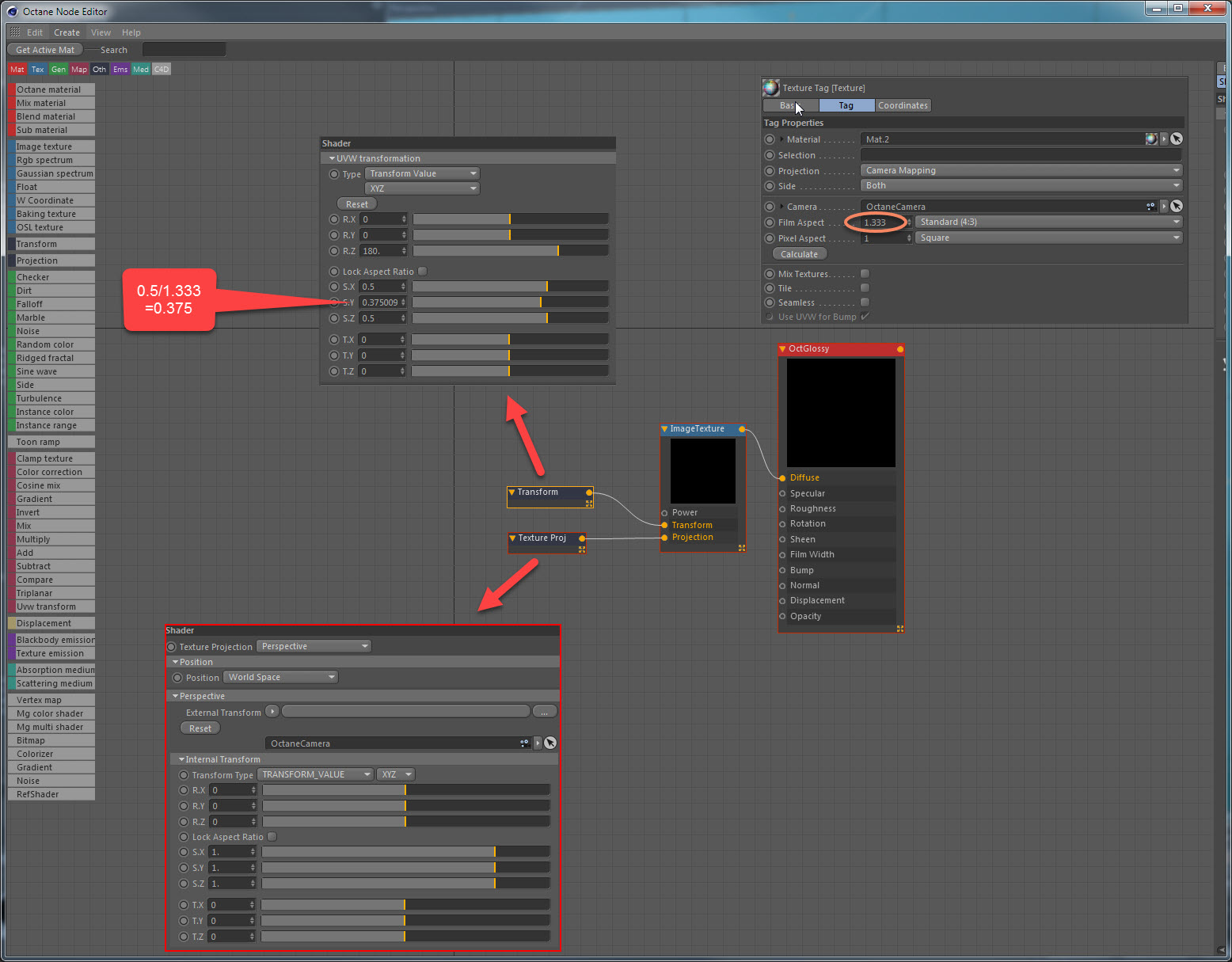 I recall using Perspective in the Octane project node about a year ago for a big VFX job and that worked out pretty well but now I'm trying to replicate the technique I am struggling. For some reason the image comes out scaled up pretty large and flipped over. It would be good if there were a preset in the projection node which sets it up for camera projection without having to dial in scaling values etc.