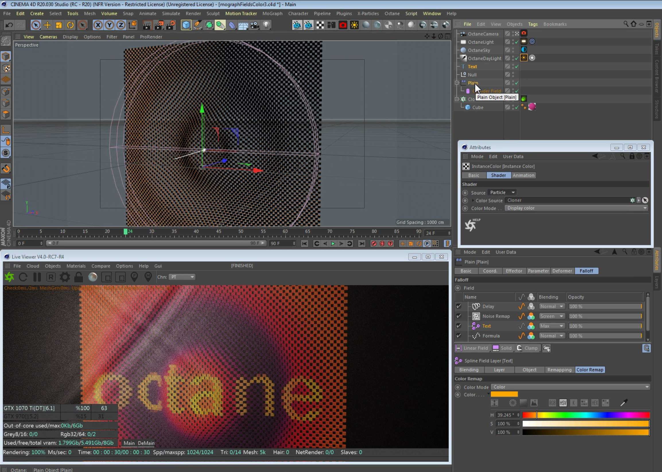 Since I never really needed it, I'm kinda lost when using the Mograph Color Shader, especially with Octane. To make it short: ist it possible to grab the color Information from an effector to use it in a simple glossy or emissive material? Please see the attached screen and, especially, the scene.