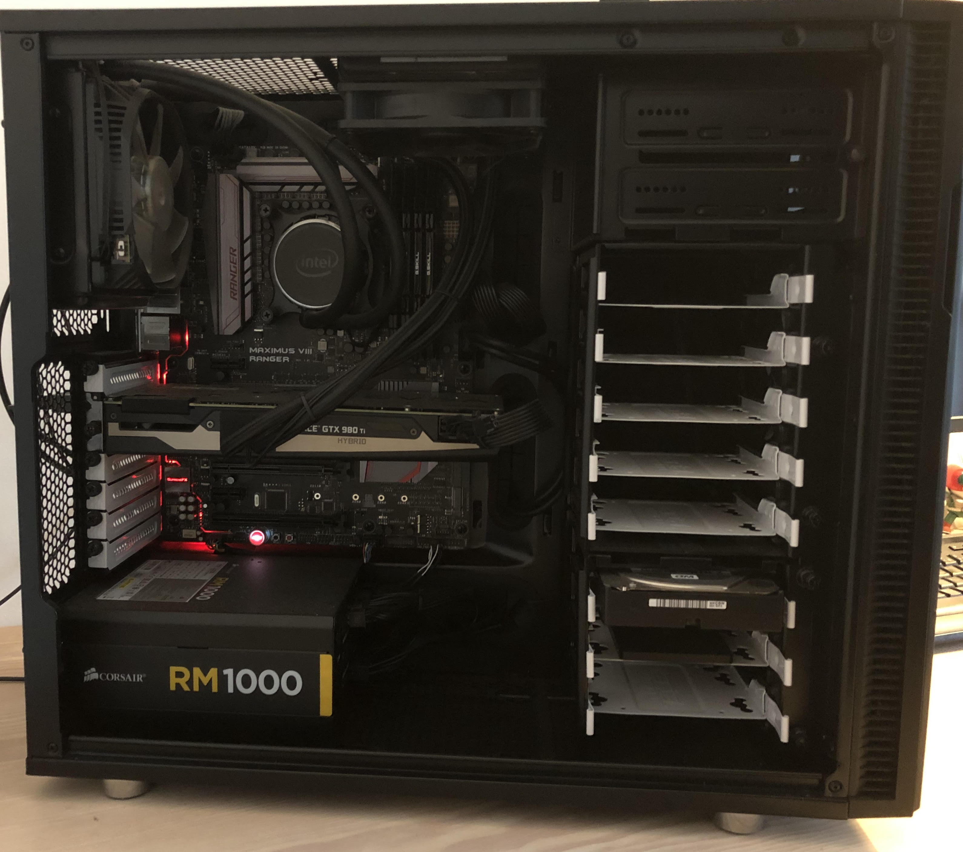 OSX 10.12.4 | Intel 12 core @ 3.33 ghz | 128 gb ram | NVIDIA GeForce GTX 1080TI | Ubuntu Linux slave with 3x 1080ti