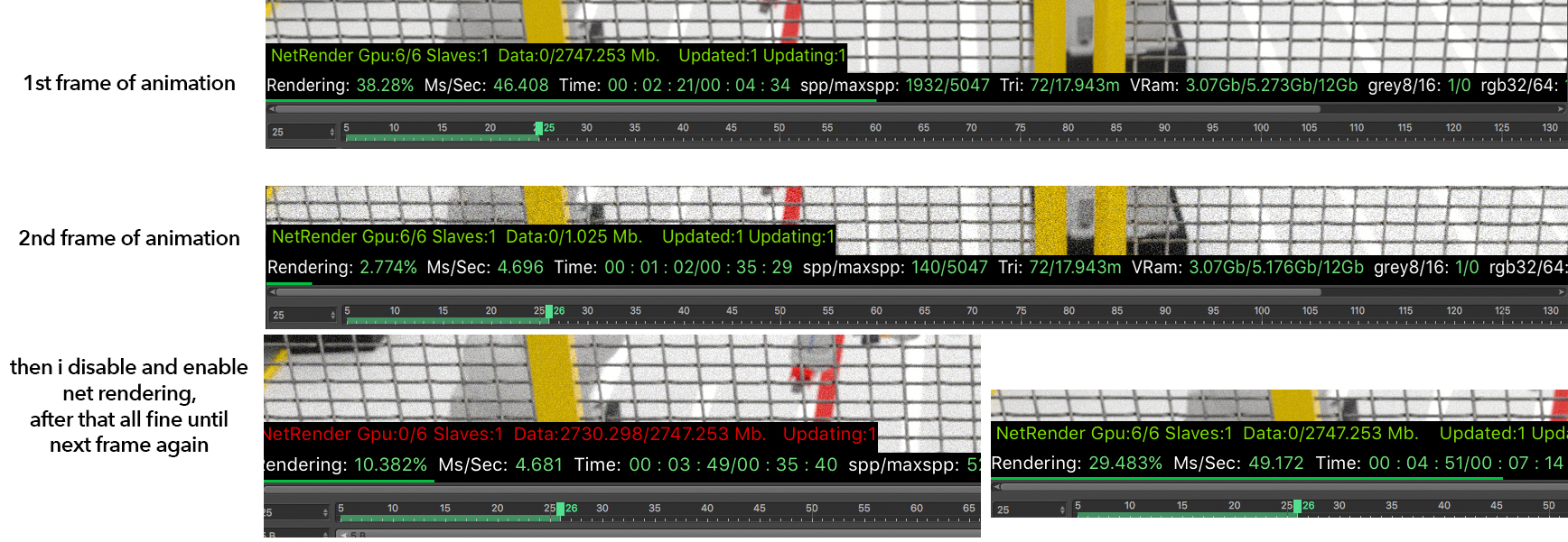 Network renderer: PC , 16GB Ram, with mix of 2x1080ti and 4x1070 ti