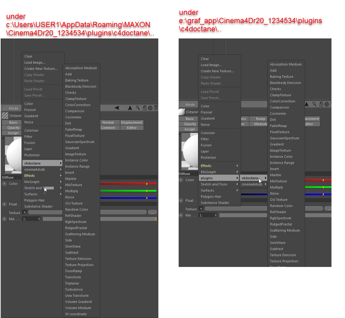 In my case, when I put octane in App-Data/Roaming ....( like xparticles) it does not change.