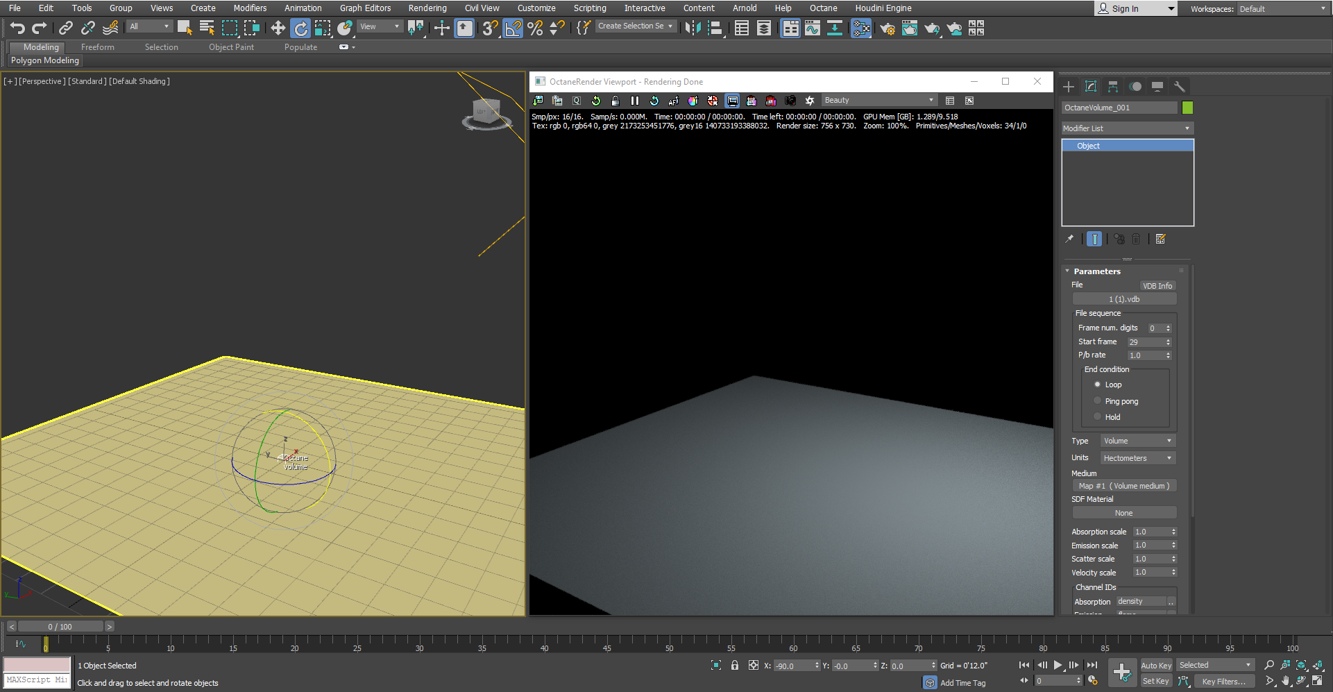 Fig. 3 Manually scrubbing in the timeline while set to file 1 (1).vdb does not update frame.