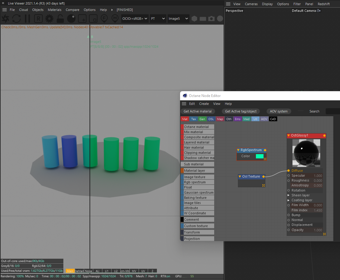 I just realized, that there is a color shift betweenn having a color defined in the octane object tag and using the osl node (or using the custom object color) and using an RGB spectrum with the exact same color. Any idea how to fix that?