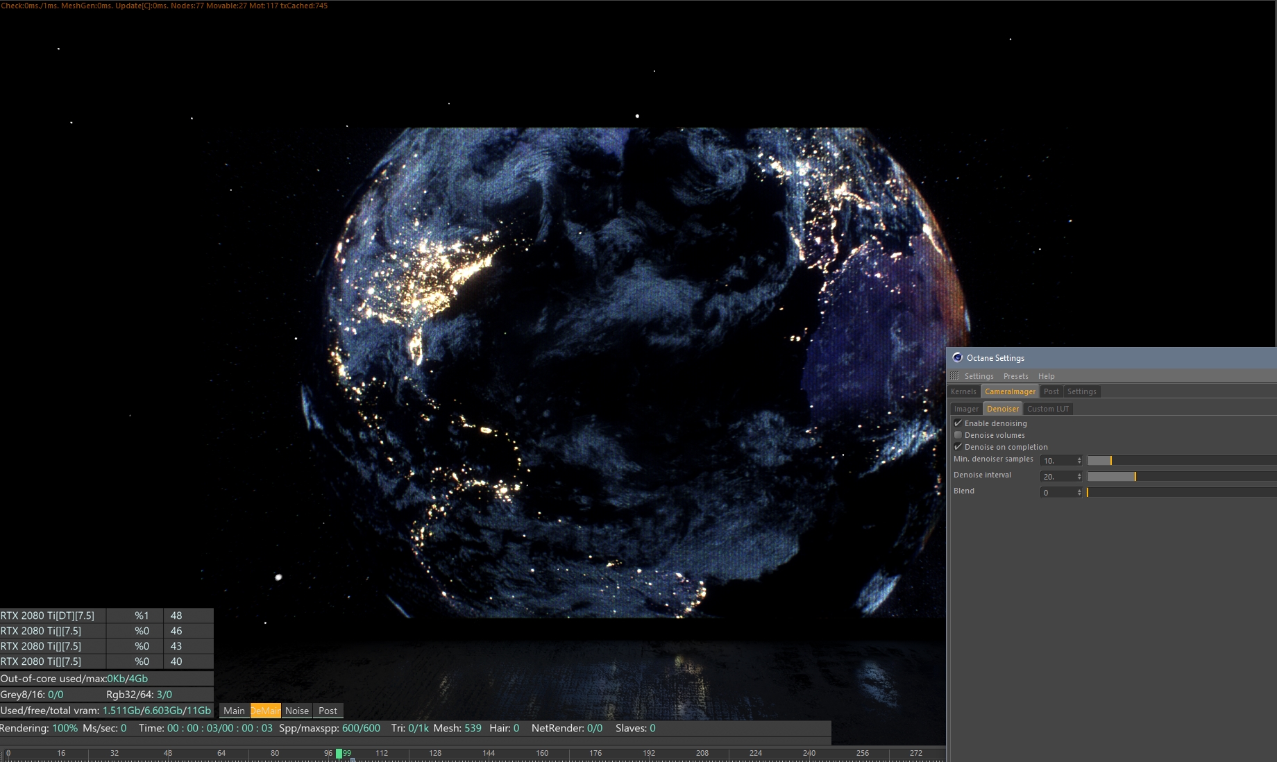 4.01 and tried the recent 4.02. None of them work with the denoiser. Only works in IPR. I have tried 1920 x 1080 and 1080 x 1080, and 960 x 540. All shutdown on either the first or second frame. Big or tiny scene file, does not matter. It is the denoiser.aoktar wrote:Octane version and resolution? Temperatures and having a PSU which is enough for four 2080ti?