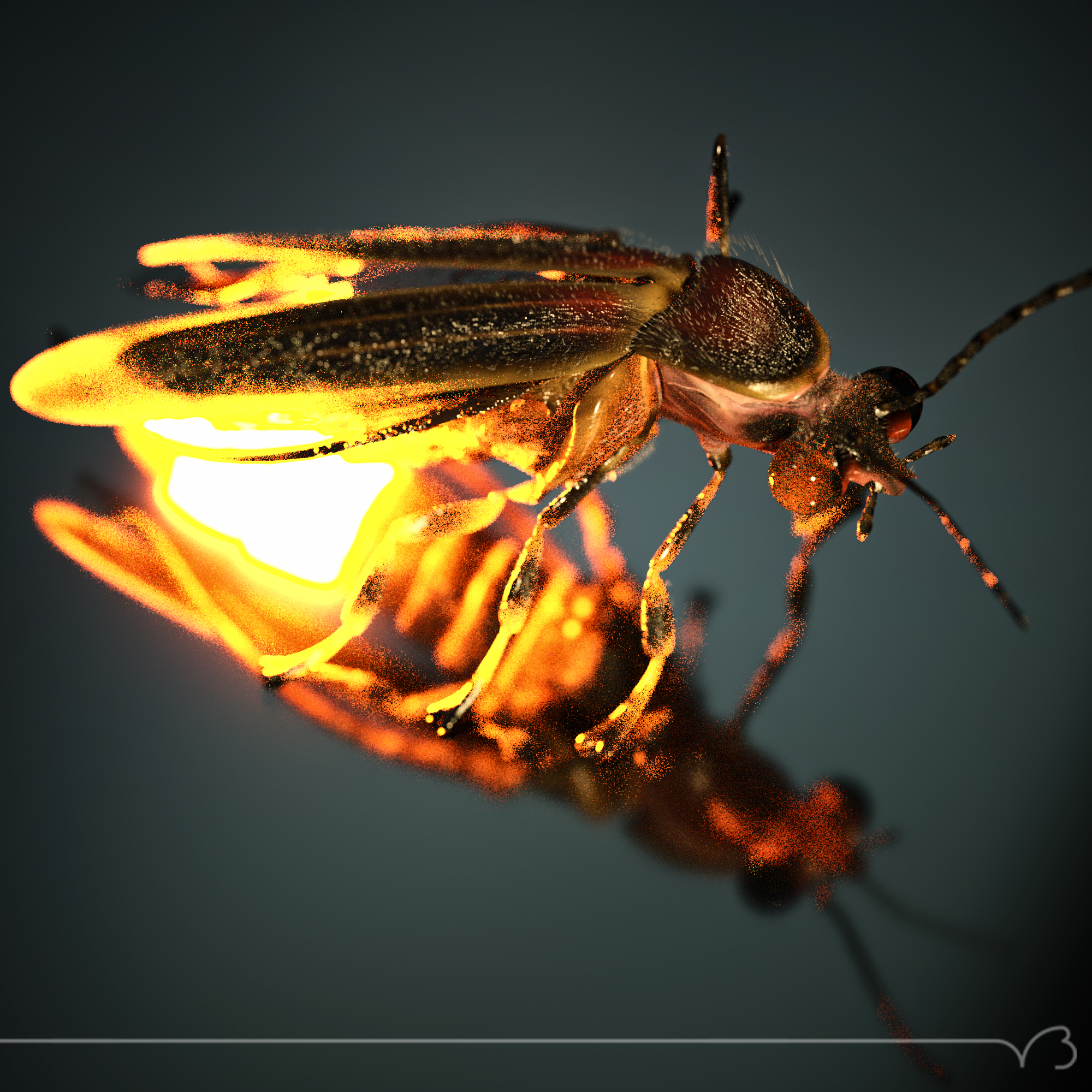 All the final renders have been done in PT with about 3000s during 1h~1h30m for the ones with just HDRI light, and about 9000 for 4h~5h for the ones with the firefly's abdomen light and a secondary spotlight to shed some light on the subject, plus an HDRI for the enviroment. I tried PMC and for my first test it was faster and clean, but I did something with the lights and now for the same samples is more noisy, currently I'm playing with those setting to get it right, I'll update when I have some PMC shots.