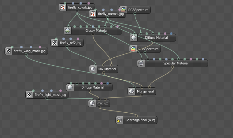 I've mixed all three material types using different masks to have a single material for the whole firefly besides the eyes which are a simple specular material. It's been a lot of fun, and as always Octane has delivered, and it looks far better that what I had expected. I had to go many times back to adjust the mask and tweak the materials.