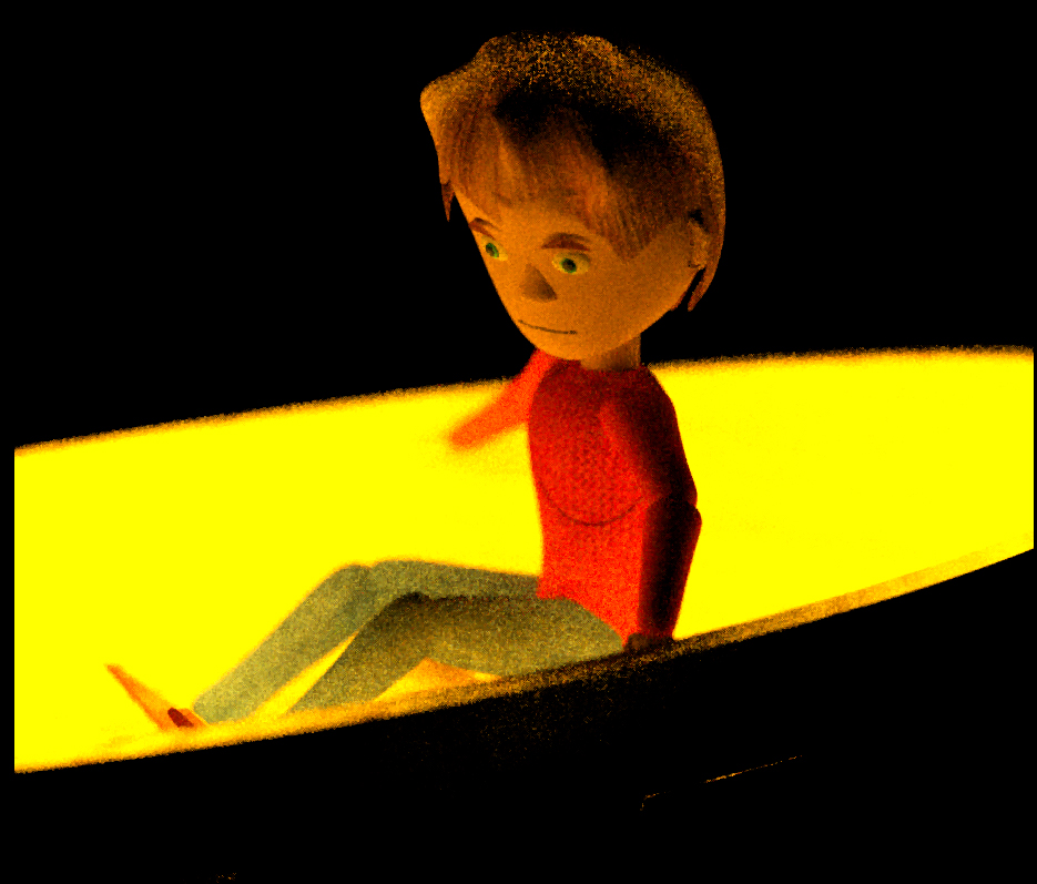 Those images are the individual light contributions but I cant work out why the bright yellow lamp in the boat next to the boy is reduced so much when the other lights are turned on.