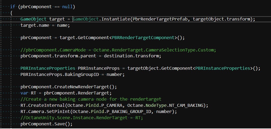 var RTComp = targetGameobject.AddComponent<OctaneUnity.PBRRenderTargetComponent>();