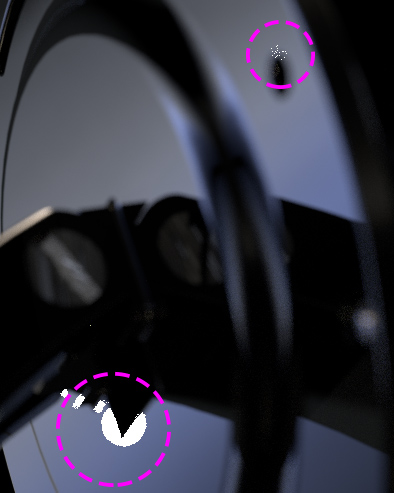 i use 4DM Octane Light. Visible on Camera is deactivated. But i saw the light source on texture. And i have pixel artifacts on it.