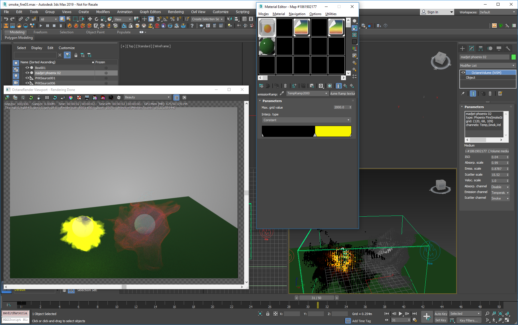 For the emission ramp, volume ramp texture : set the Max. grid value to 2000.