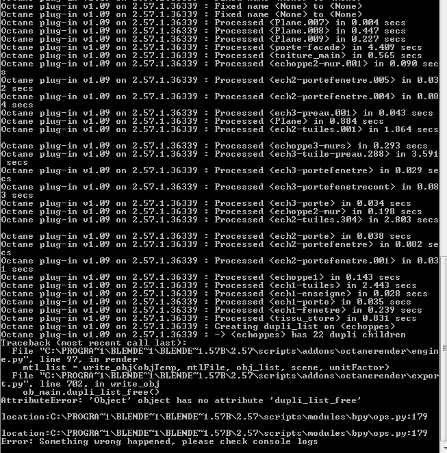 'Object' object has no attribute "dupli_list_free"I've put a scrrenshot of the console in attachement of this post.