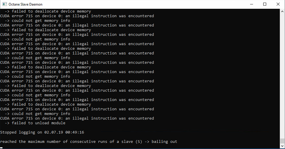 I'm getting this Cuda 715 error on my brand new renderslave (win 10 pro 1809), Asus x299 Sage WS Motherobard, i7 9800x, 201080Ti and 1*1080, Corsair 1500W PSU, 64GB, Octane 4.04, nvidia 417.35 drivers (need to keep them 'coz of octane 3.8.05 can't work with 419.x--->).