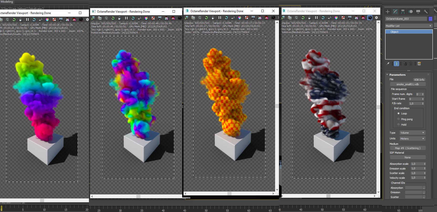 Unfortunately I cannot test these volumes you attached. Do smoke textures mix? If I release yellow and blue smoke texture will it eventually turn green? Also any news about different color fluids mixing with each other using Phoenix rgb? Thank you