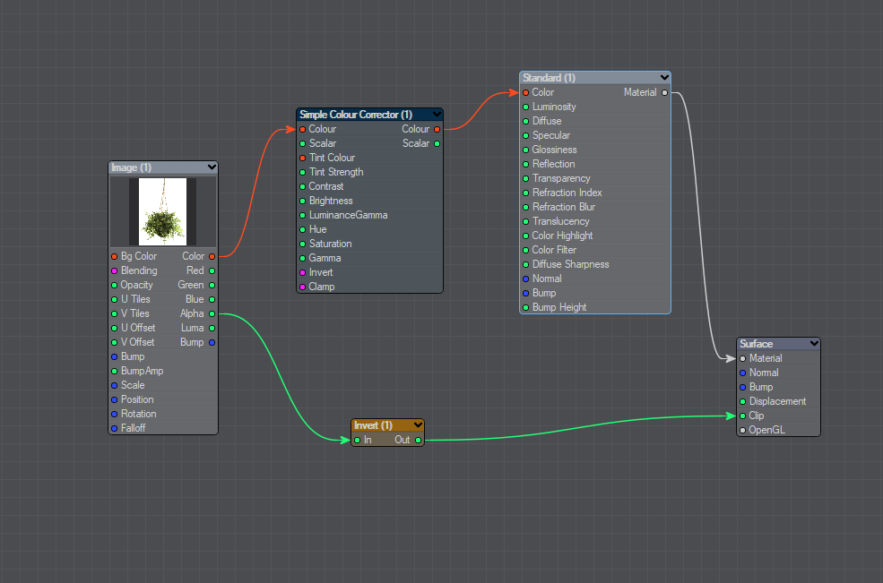 In case, it would be useful to be able to get Alpha from same node as in LW. Maybe inside Diffuse node there could be an option (like also Vray does) - a switch which tells the node to gather Alpha (and not RGB) for given channels (i.e. Opacity). So if i plug same node into Opacity, it will not get the RGB info but Alpha one automatically.
