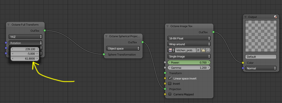 It neatly shows how to attach an hdri rotation to an empty, but I can't figure out the Octane equivalent. Here is the setup: I am assuming that this can be keyframed, but maybe not.