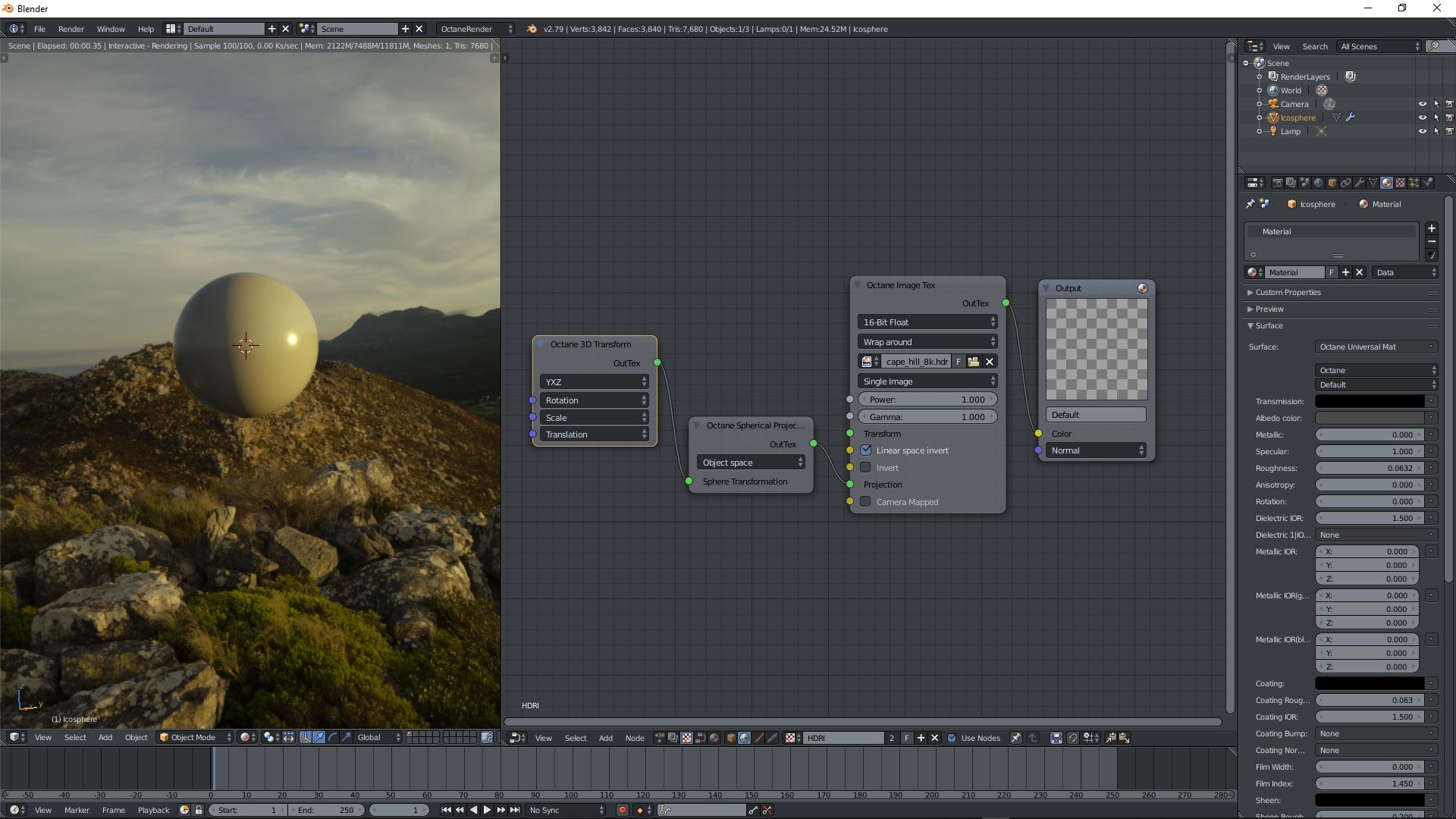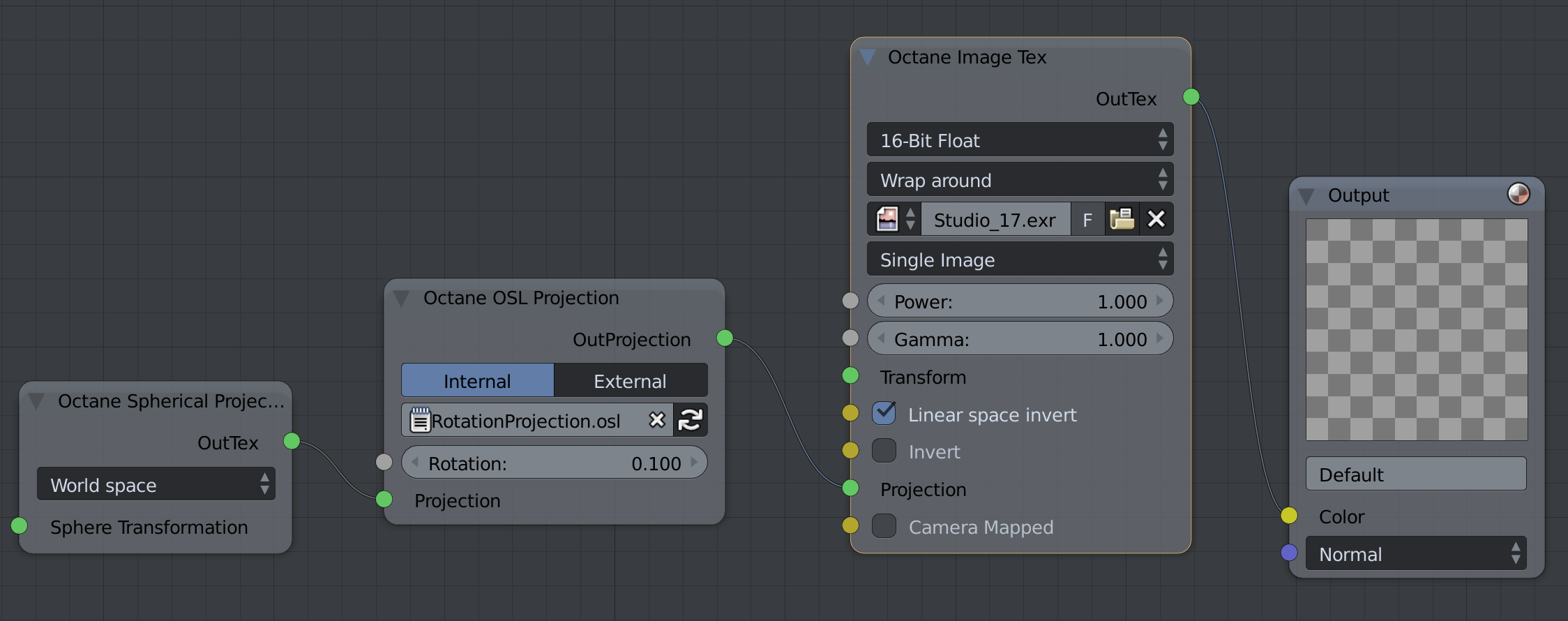 Lino - you're only answering part of the questionlinograndiotoy wrote:This is a my HDRI setup. You can use the Rotation of the Octane 3D Transform node to control the environment.