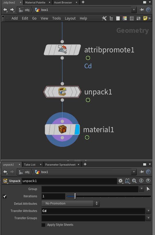 I've made an effect using Houdini primitives and they have colors. I used attribute promote to send colors to vertexes and added Cd in to attributes tab of Octane Object Properties.