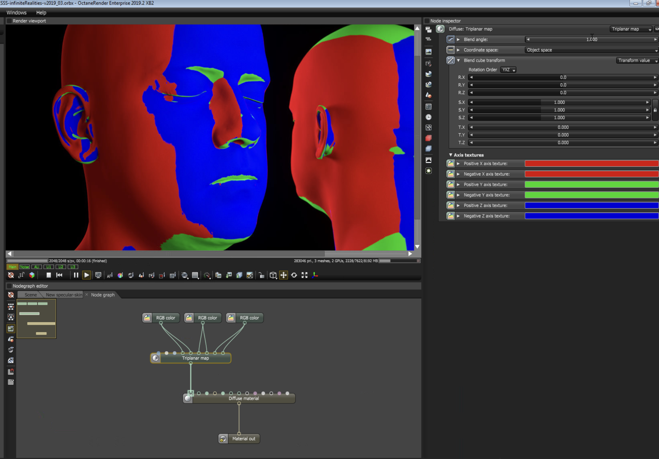 Got problem with Triplanar Map. It renders everything white instead of green blue red when conected to diffuse. Any idea what I'm doing wrong?