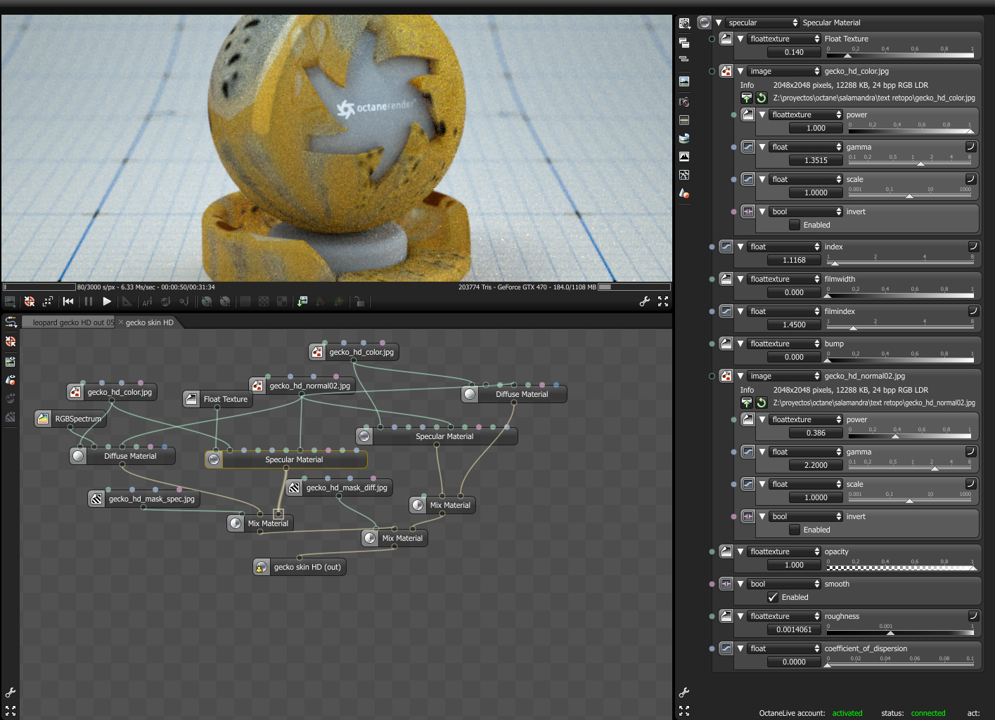 yeap, there could be a new category, Octane A-live models, lol. I have to say that even thou there is not real SSS for now it can be faked combining specular plus diffuse, using coarse specular and low IOR values, here is my setup for the gecko skin, and it can still be improved.