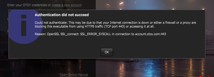 I've been getting this error: Cannot Authenticate: This may be due to that your Internet connection is down or either firewall or a proxy are blocking...