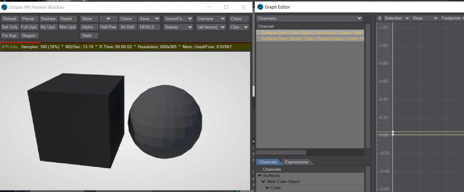 Problem is, when changing the value of those envelopes in the Graph Editor, only one surface changes in IPR - even if I single select the other one, I can't affect it to make it change in IPR. Only once I go into the surface Node Editor for that surface will IPR discover that the value has changed. I have to enter the Node Editor for each surface before the change is refreshed (making the whole system pointless) - (EDIT: or framestep to make it catch the changes).