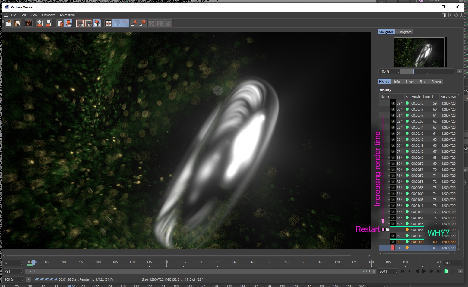 And if restart render MB calculation time significantly reduced FOR SAME FRAME and start to increase again.