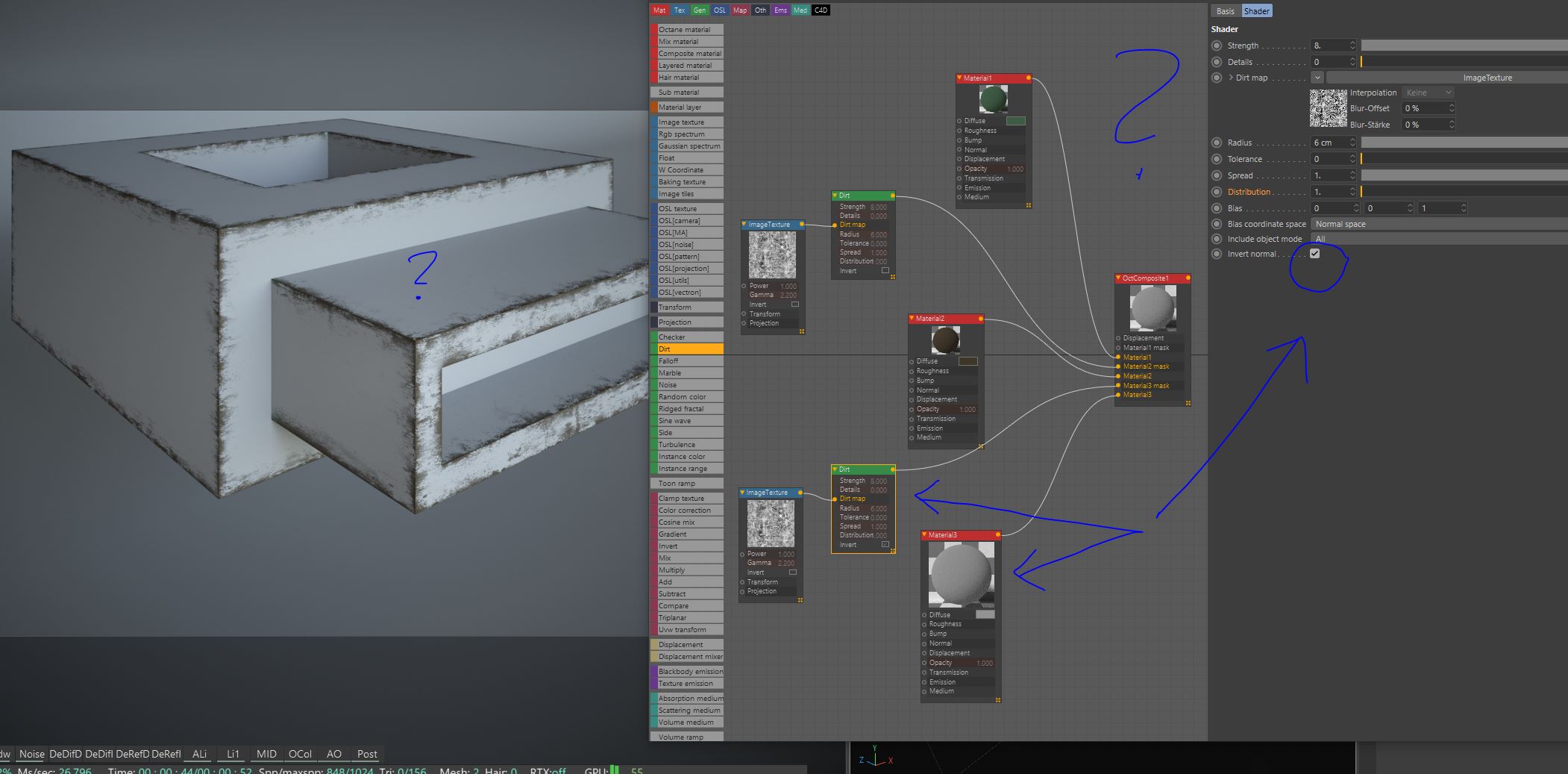 And now with a 3. Material (Mat 3 for the corners) everything gets messed up!