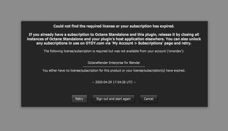 I'm running both parts (the server and the blender octane edition) but when trying to activate blender I have this window (both files downloaded from the forum in releases, also tried the files on the download page, not working
