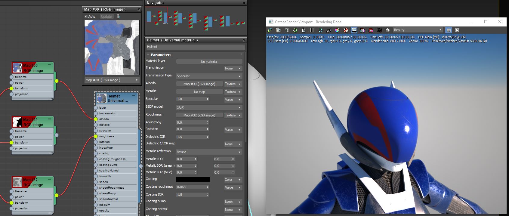 This is the conductor (metalness) helmet with albedo gamma set to 1.0. This compensated for the overly dark metal.