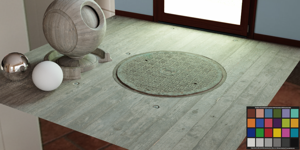 The manhole cover is displaced, the ground not, only a normal map.
