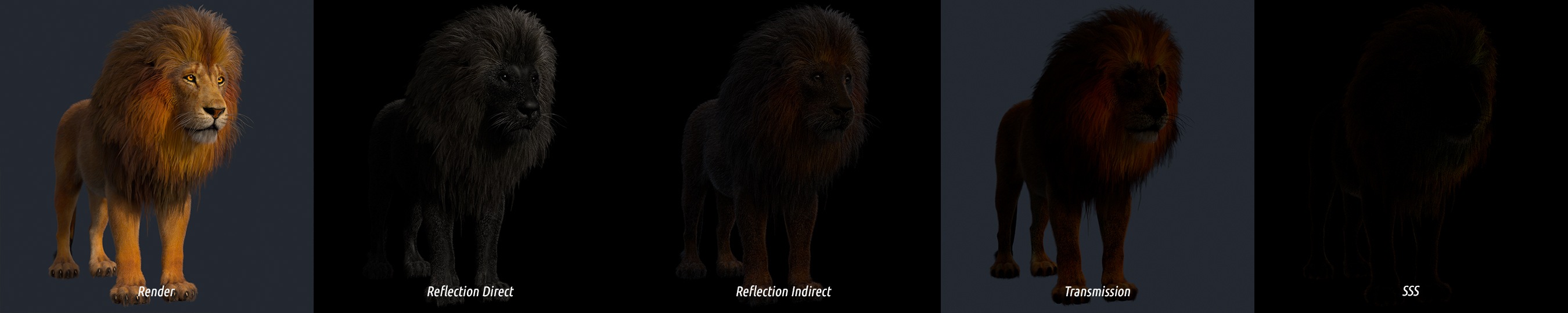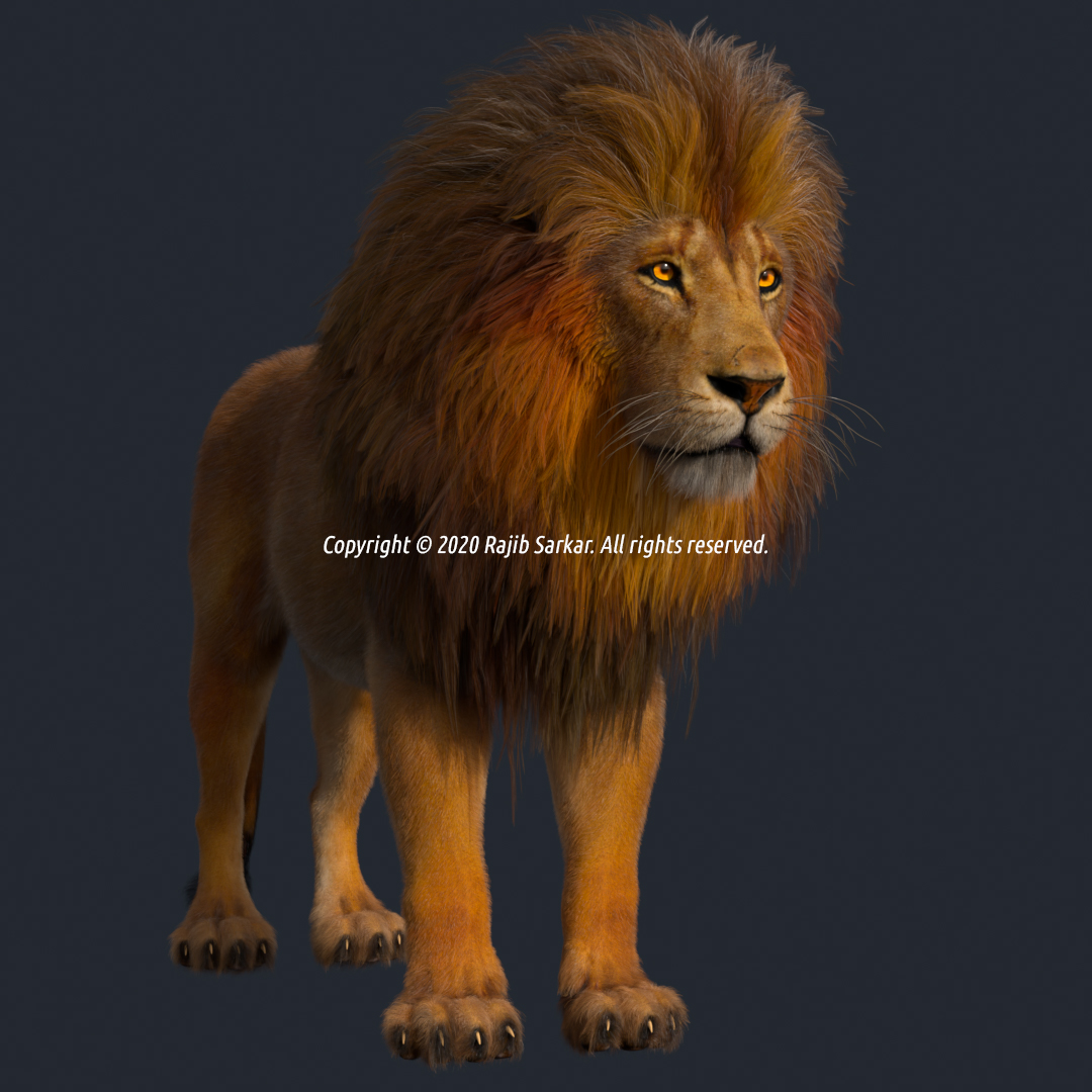 The SSS effect will be more apparent if the light is behind the Lion. Here I did not do that. The light is just to the front left and front right of the Lion from front.