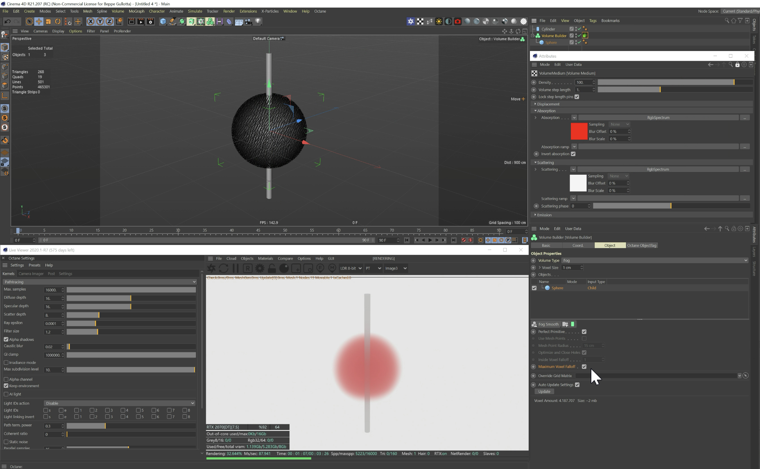 Making a spherical shaped volume with a density falloff