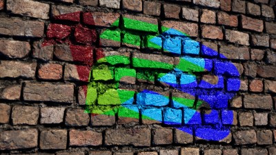 Now the render above is fine if I wanted the numbers to be three plastic signs someone hung on the wall. But what if I want it to be more like paint? Well in that case I wouldn't use a Geo Shell at all - I would just add the same decal node setup from the screenshot above to my brick wall material and use the combined RGBA nodes for the 'Amount' input of a Mix Material instead of a Geo Shell's opacity. Then I can easily use the brick AO, normal and displacement maps for both the brick material AND my decal material. Getting something like this -