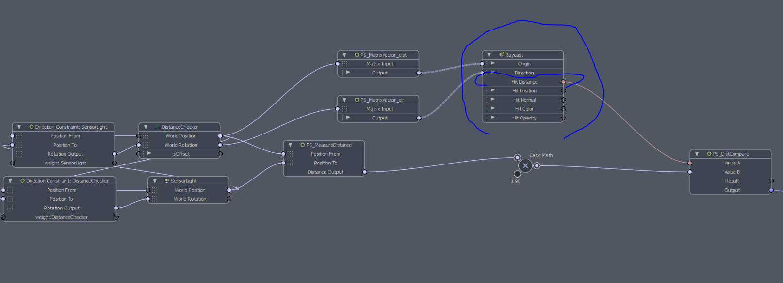 I work in Octane for MODO and I met a problem how to get a certain information from Octane render engine. On the picture embedded is a nodal scheme, where I measure a vector length from my Spotlight to the nearest surface where the ray from the spotlight hits. I use a MODO's raycast node to get this hit distance. To make this raycast node work I need to run native MODO's render engine - this means it's useless in case of Octane render. Is there a chance to obtain same information from Octane? Maybe via OSL language?