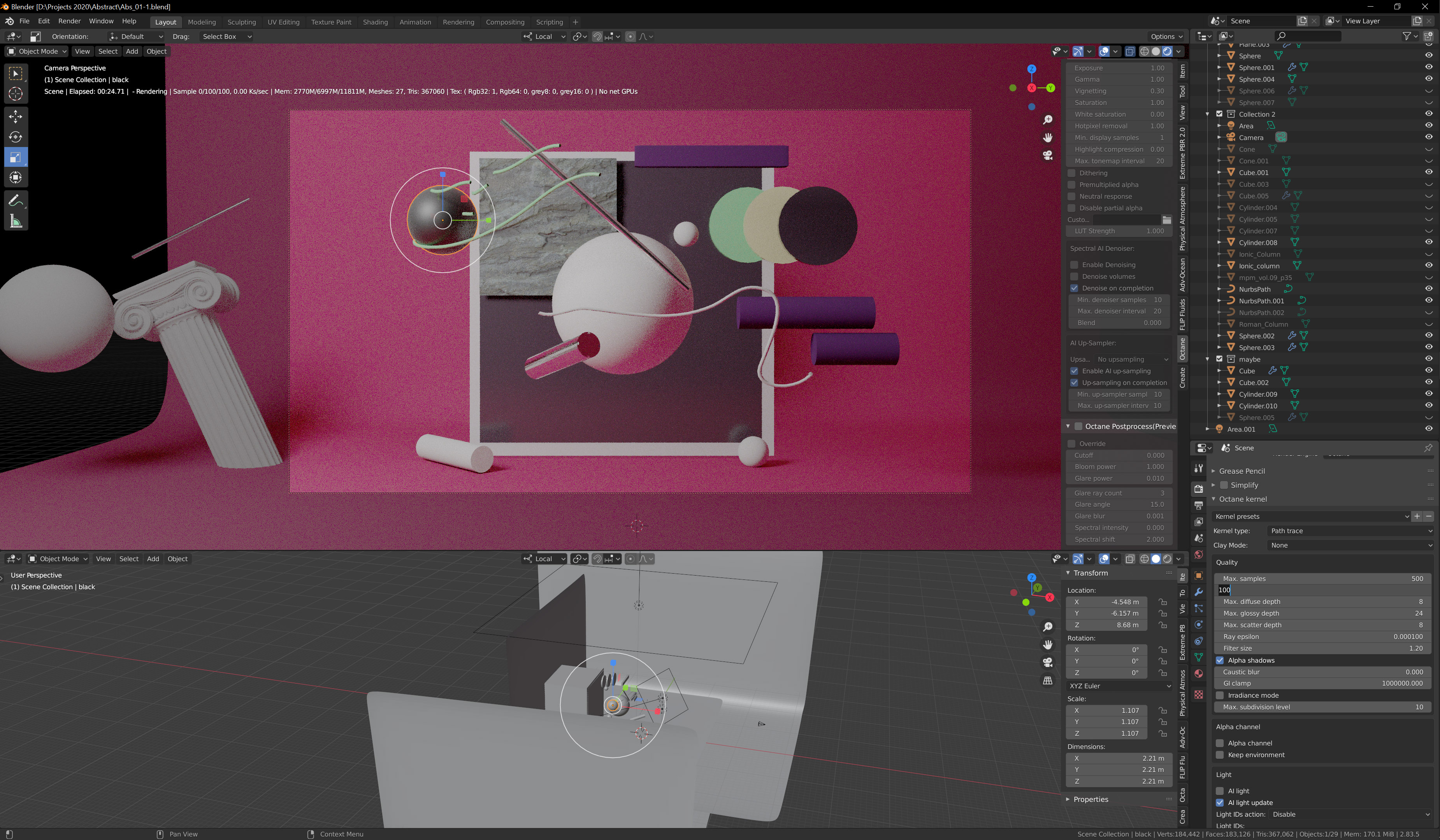- the render speed fluctates wildly. i wrote about this in a separte post. here again i have 100samples rendering at 24 seconds and 200 samples at 22secm then 200 at 35 sec.