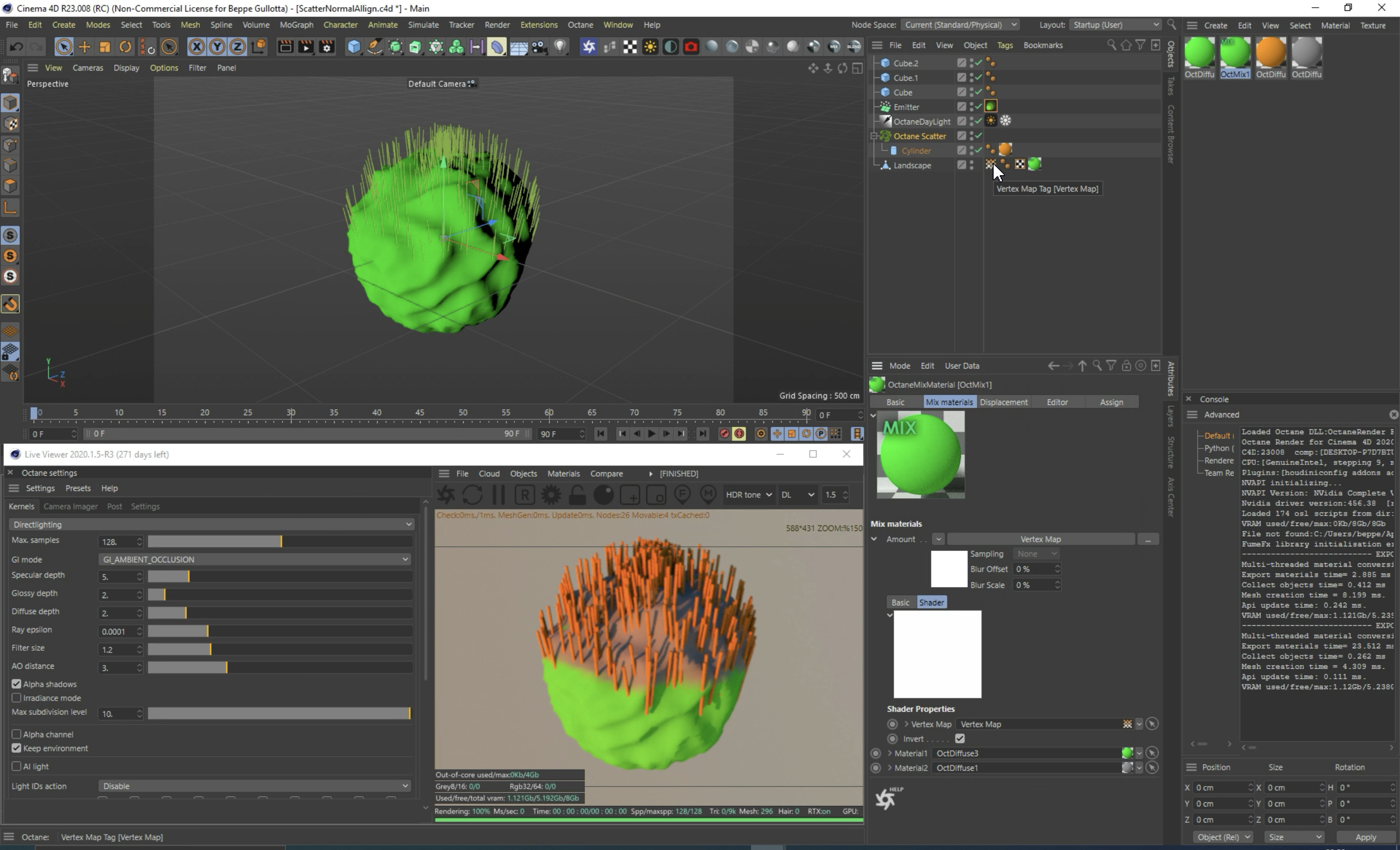 I have an animated vertex map controlled by fields (the object is also animated on Y axis) that is causing octane to crash I am using to mix between materials.