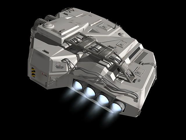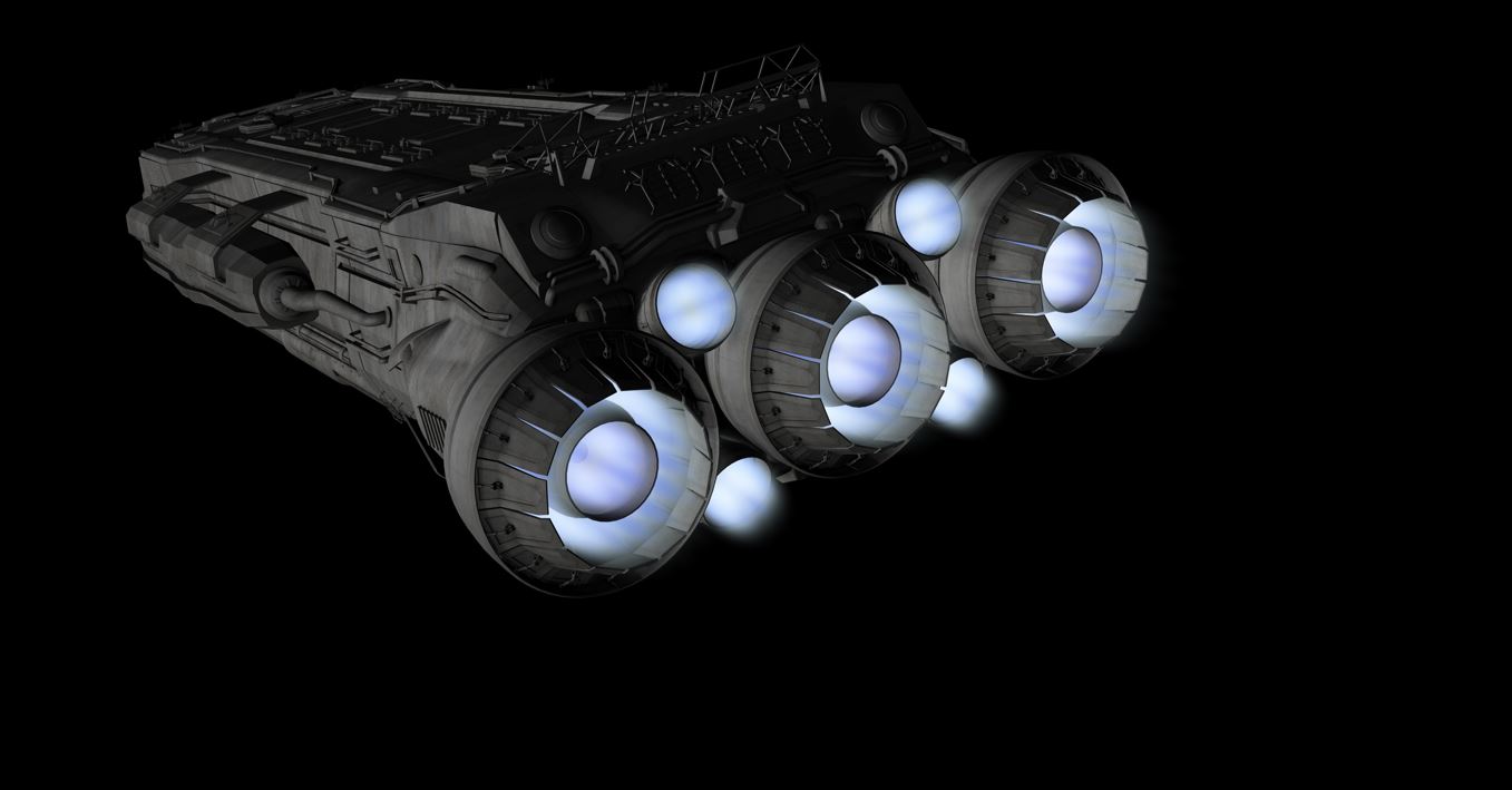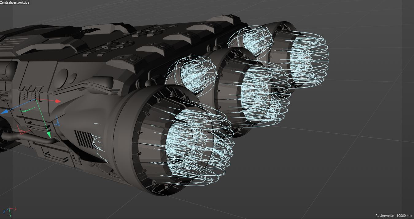 I wanted to rework some old scenes with spaceships I created many years ago. I have problems with the engines. In Cinema4D I had used visible point lights, which had a linear decrease but no emission. I could live with the result, not very realistic, but fast rendering.