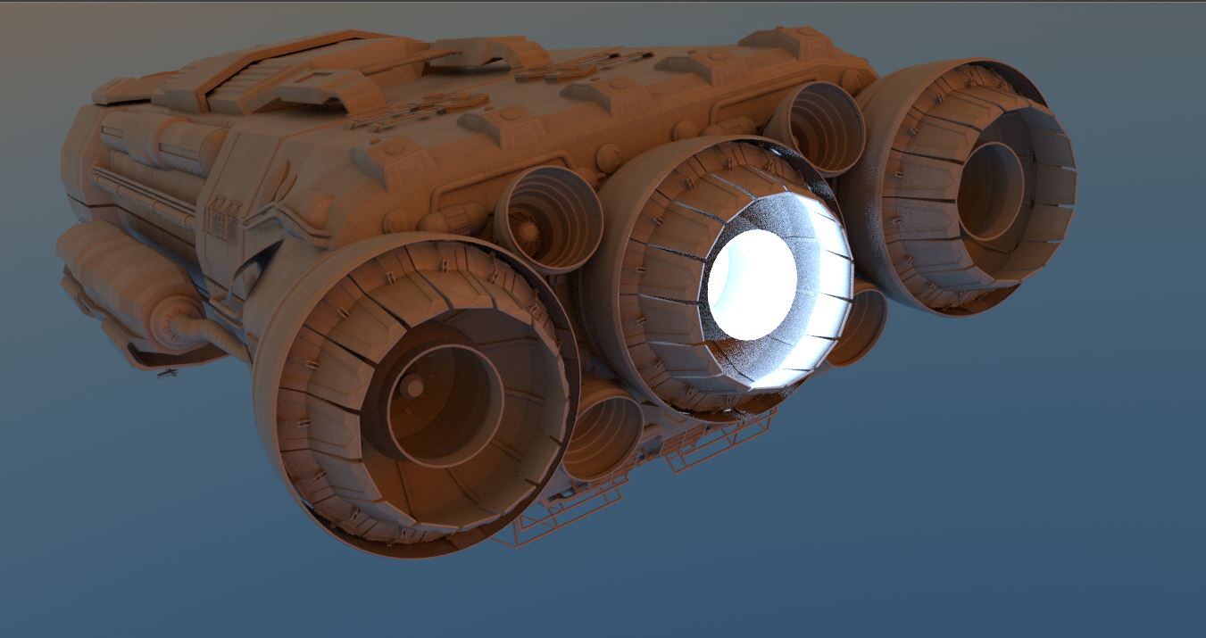 With Octane I can't find a solution to get a similar result. I played with gloom power, lights and materials with emissions. But somehow it does not fit. I think there is an easy way, but I have trouble finding it. Any ideas how to simply represent burning engines?
