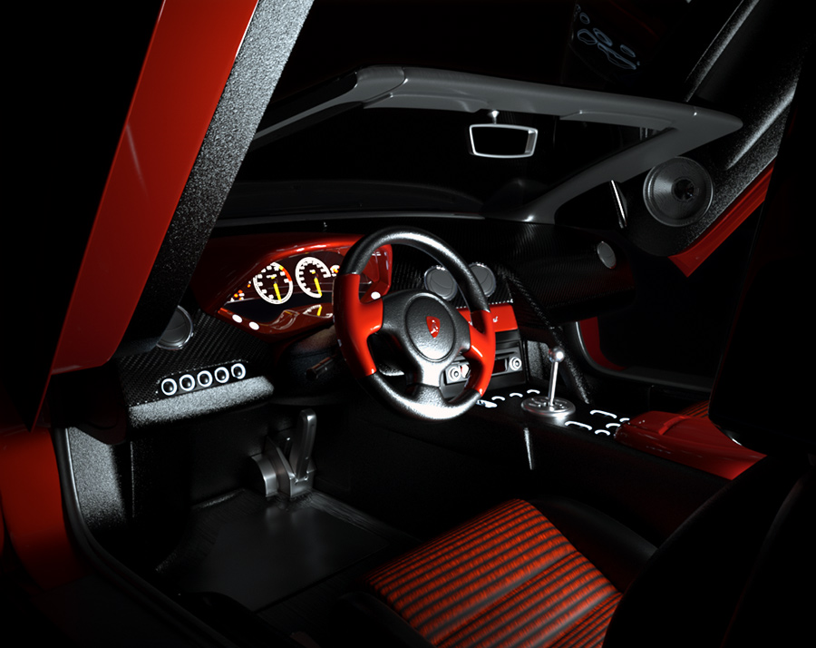I used mostly materials from the livedb (paint, metals, carbon fibre, etc...), the rest are all turbulence based procedurals (leather, plastics)
