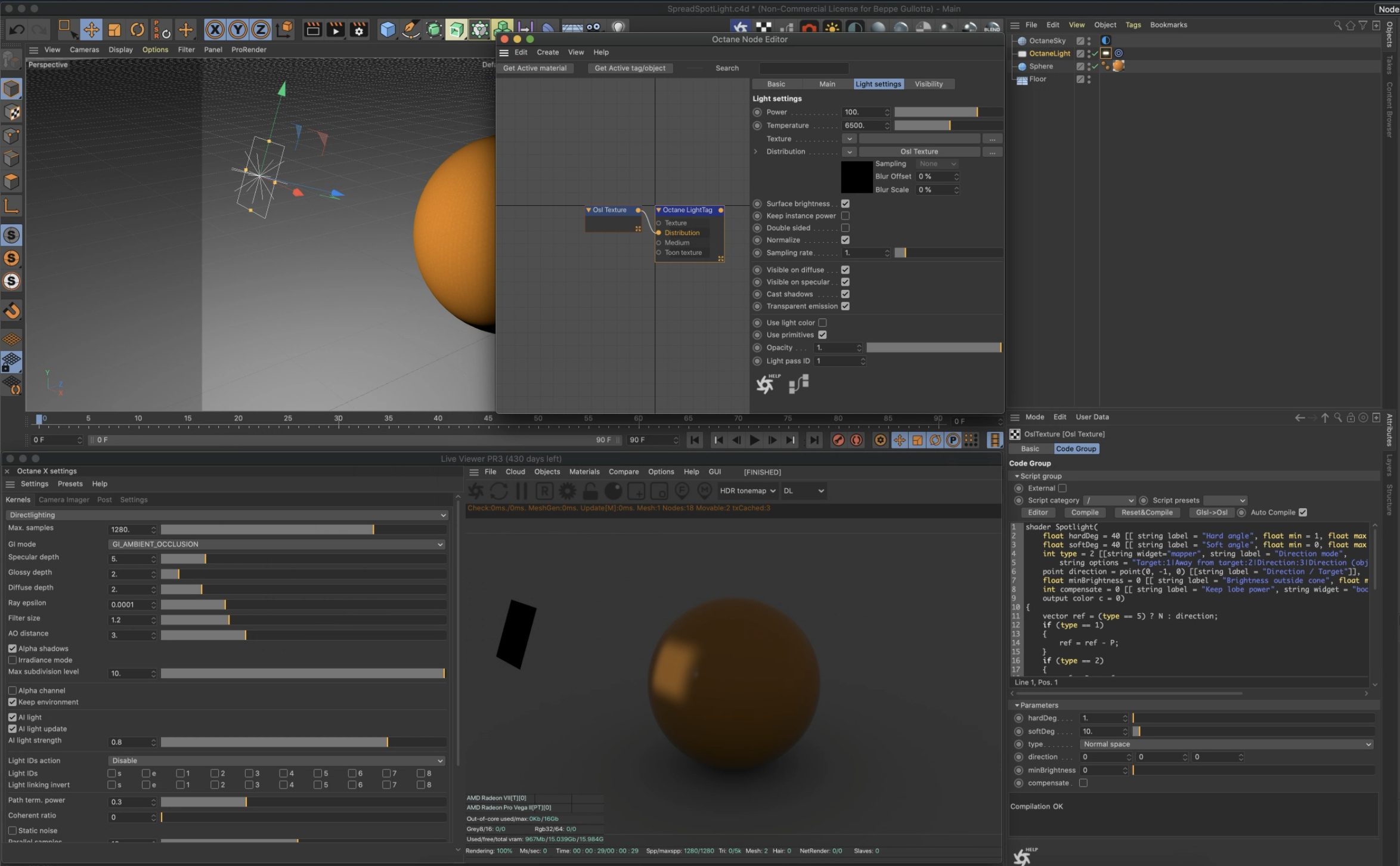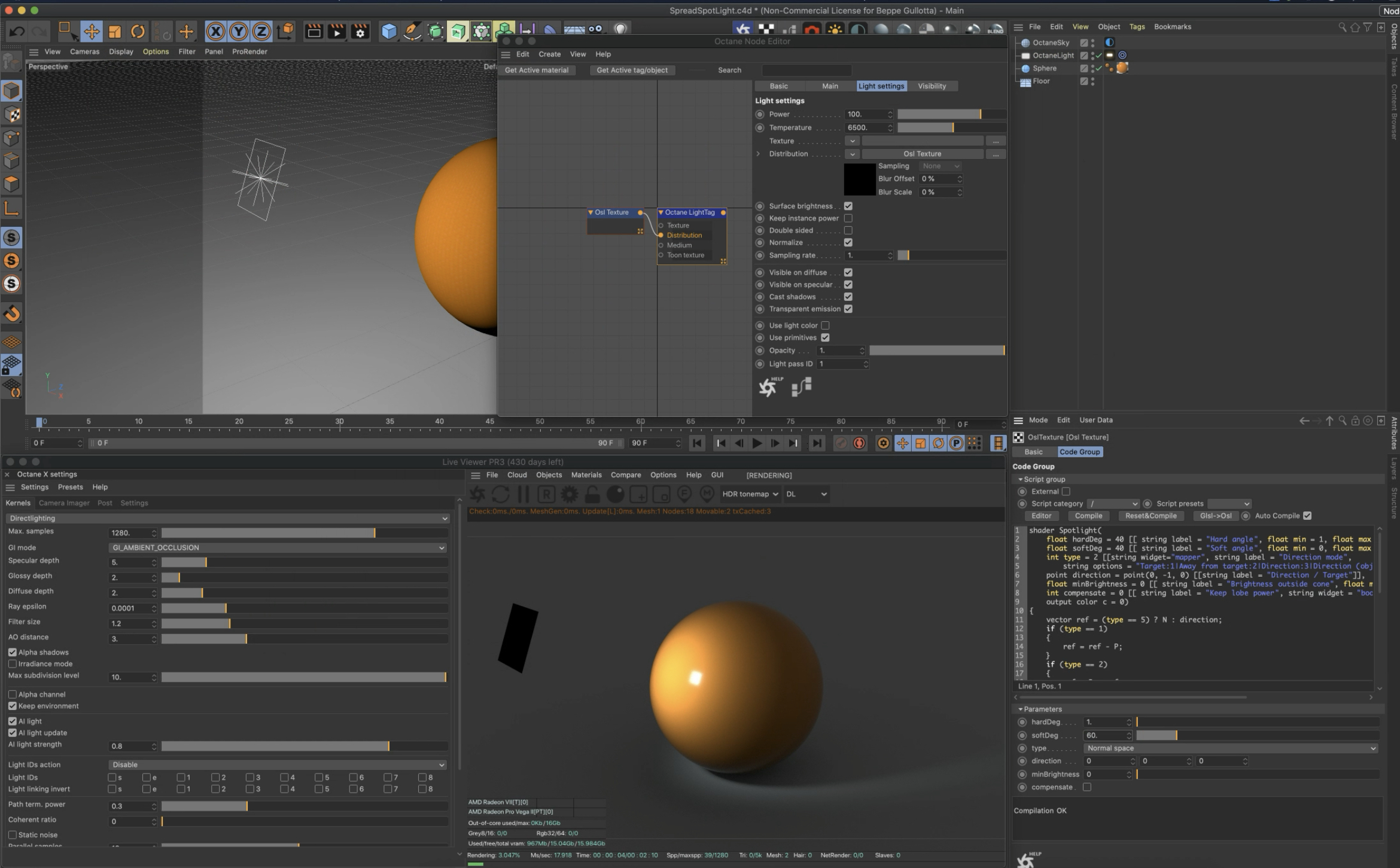 here is an example scene of the Spread SpotLight OSL script in c4doctane: