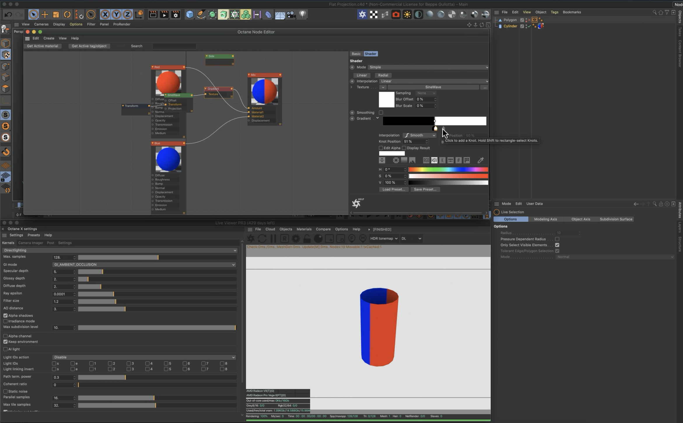 here is a different approach, instead of using a Side node, I have used an Octane Gradient node, but with Black and white handles very close to the middle: ciao Beppe