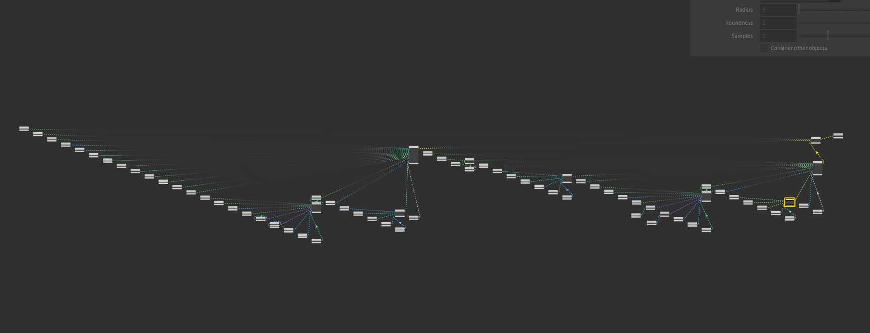 Ah yes haha. I was trying everything, couldn't remember how to do it. About the materials. Importing them from LiveDB, well, they are kind of a mess. Every parameter is exposed and wired to a vop. Texture files and the other necessary ones I understand. Do all the float/vector/integer variable need to be exposed as well? Can they not just be baked into the material parameter. It's very time consuming and I find difficult to navigate them. Like this for example. All that's really needed to be wired into the material is a few vops. A medium, turbulence, transform, projection, and a round edges. The other ones are all floats and integers. Very difficult to work with and navigate. Is this something that can be cleaned up? Cheers.