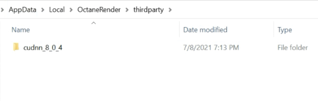 Then navigate to C:\User\Your User name\AppData\Local\OctaneRender, create the thirdparty directory, and copy in in it the 8.04 cuDNN library unzipped folder.