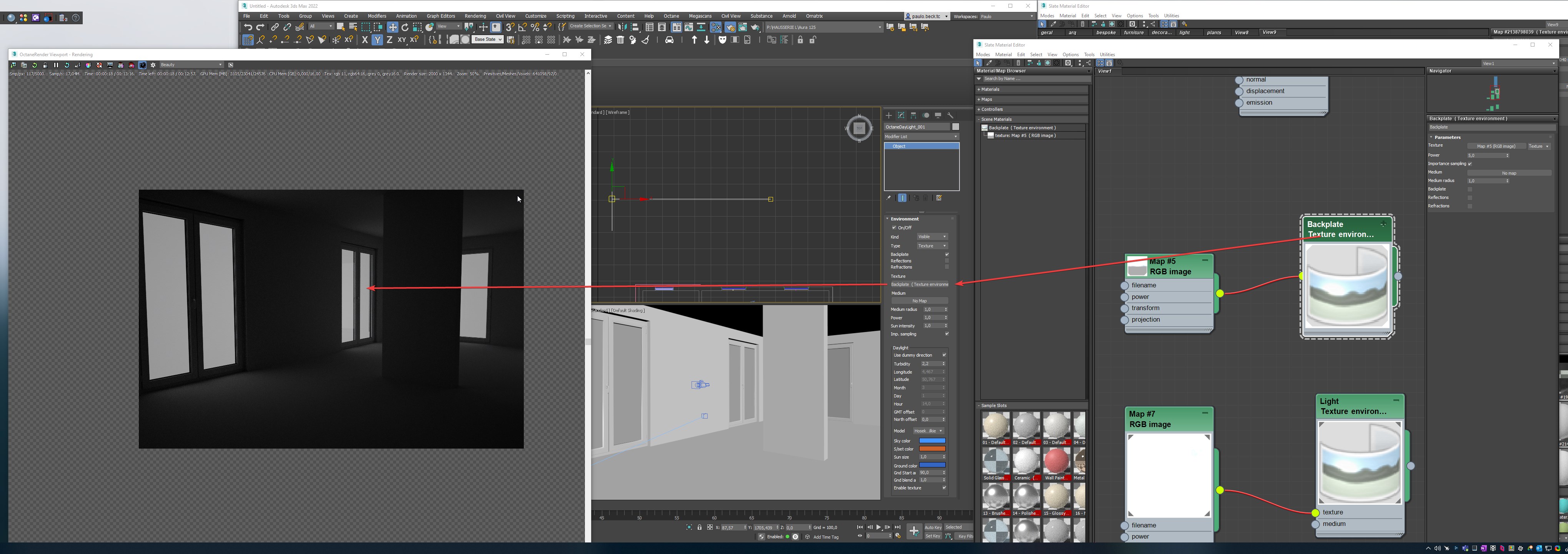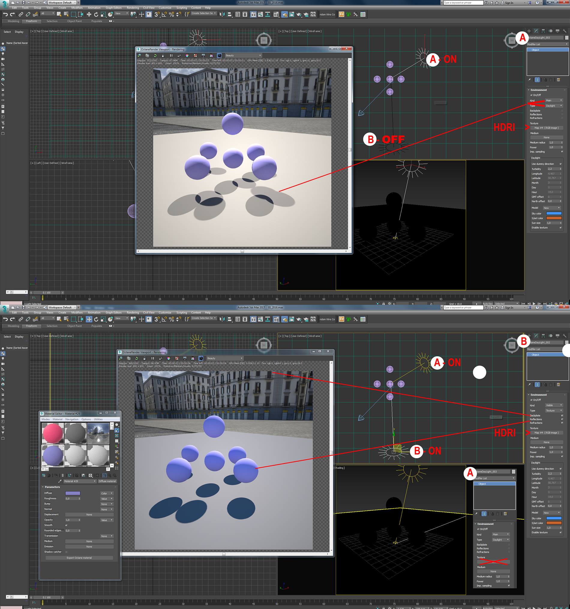 I am using the octane Daylight system to create 2 independent skies
