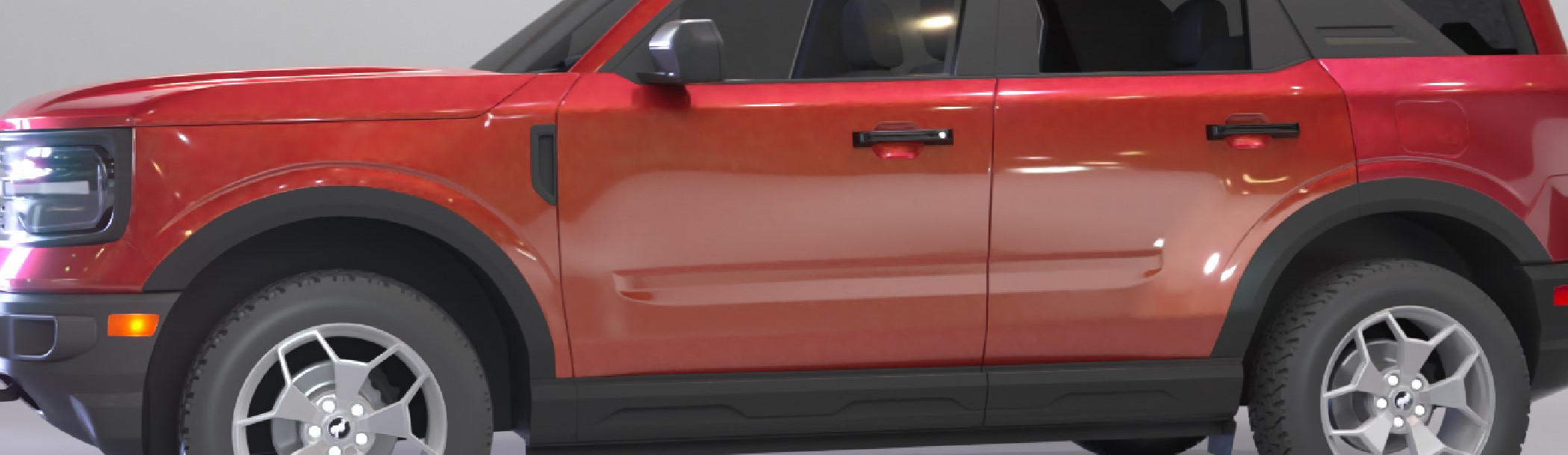 Blotchy red car paint, unexpected hue shift on the side of the car above the rear wheel