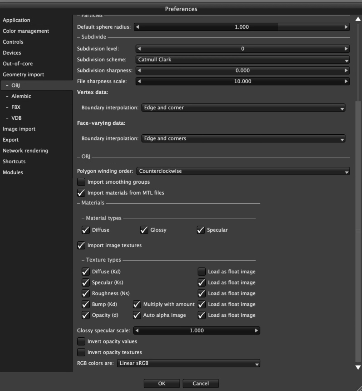 Checked preferences and everything seems ok, OBJ does import geometry but materials come all white, no values nor images. Also, for OBJ I don't get the dialog stating issues, it just imports, no difference between shaders, all the same and trace of where image maps where used (no nodes for bump for example).